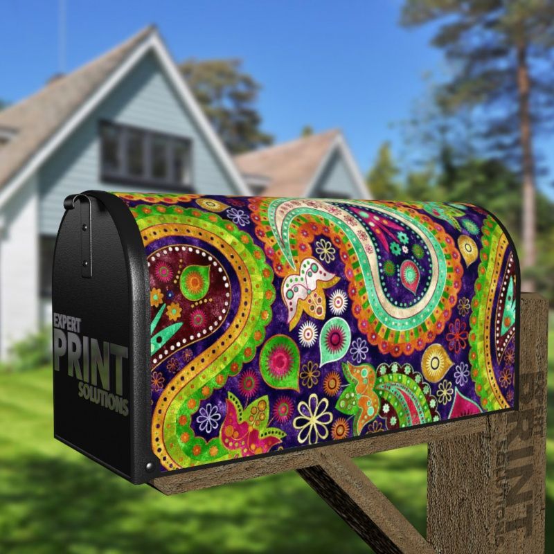 We offer this decorative Beautiful Folk Ethnic Native Boho Paisley Design #2 rural/curbside/farm mailbox cover as self adhesive vinyl or magnetic cover. Our magnetic covers have the magnetic surface under the whole design, not only two magnet strips like in cheaper products. We also offer both the self adhesive and the magnetic covers with regular opaque white vinyl or reflective vinyl which works the same way as the licence plates or road signs; pretty visible at night. We make these covers for both large and small mailboxes.