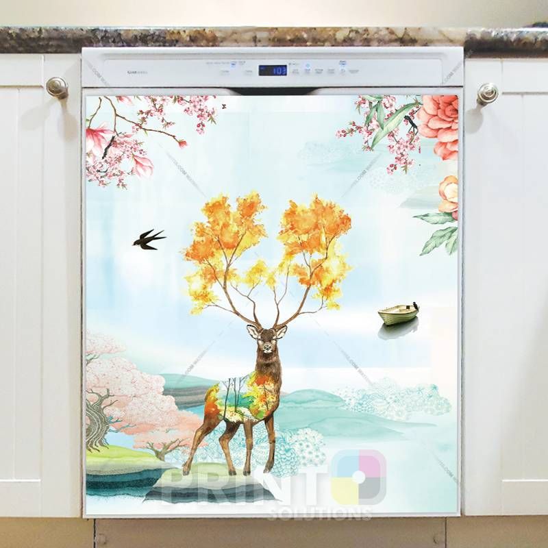 It is so simple to decorate your kitchen with this fantastic Magical Autumn Deer dishwasher magnet. Please note that while magnets stick to most of the dishwasher doors, certain doors are made of stainless steel or plastic and those materials do not support them. There are two kinds of stainless steel materials one is good and the other is not for holding magnets, so please check the surface with a piece of magnet before you order this product. In case the door of your dishwasher cannot hold magnets, you can order the Removable Dishwasher Door Sticker instead.