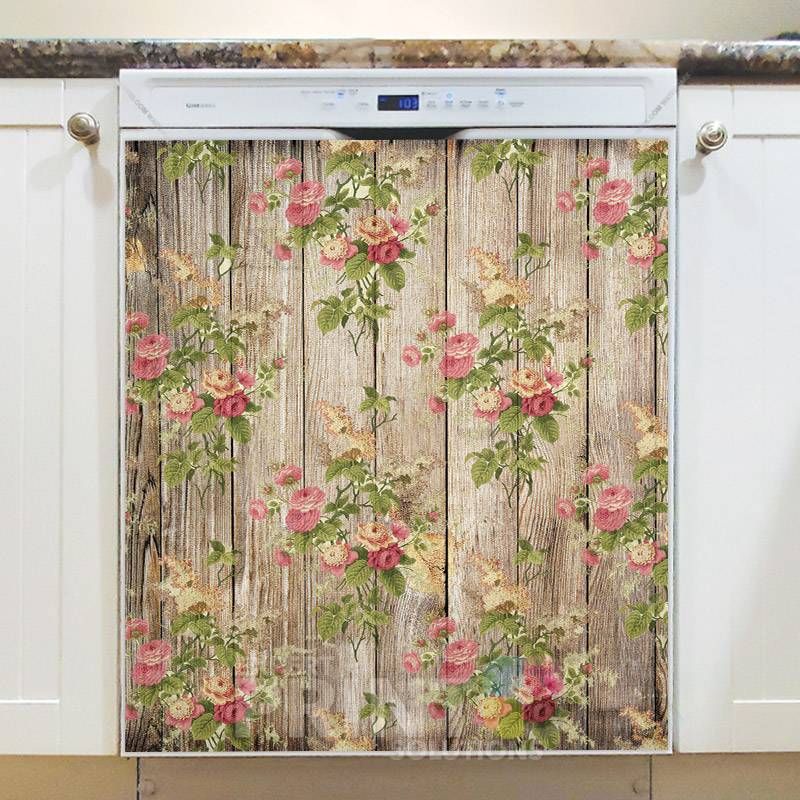It is so simple to decorate your kitchen with this fantastic Rustic Flowers on Wood Pattern #2 dishwasher magnet. Please note that while magnets stick to most of the dishwasher doors, certain doors are made of stainless steel or plastic and those materials do not support them. There are two kinds of stainless steel materials one is good and the other is not for holding magnets, so please check the surface with a piece of magnet before you order this product. In case the door of your dishwasher cannot hold magnets, you can order the Removable Dishwasher Door Sticker instead.