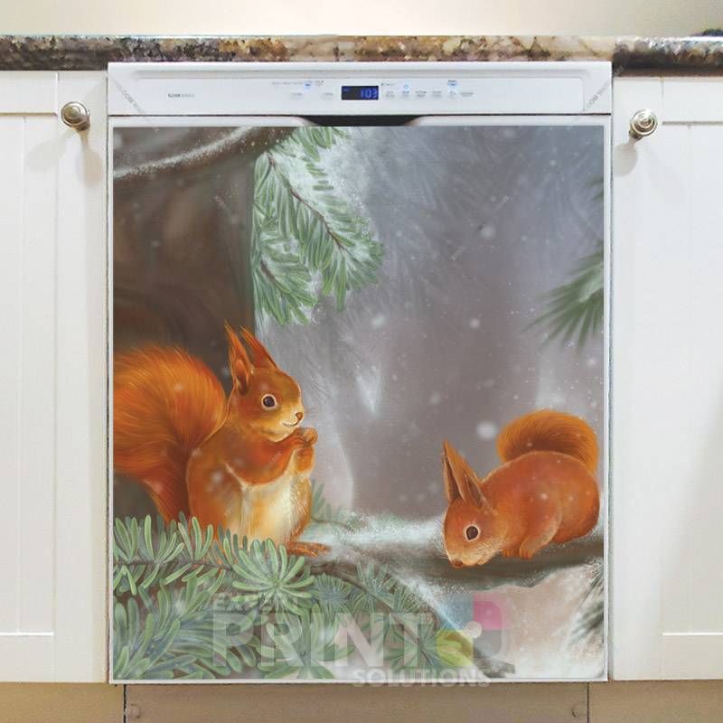 It is so simple to decorate your kitchen with this fantastic Two Red Winter Squirrels dishwasher magnet. Please note that while magnets stick to most of the dishwasher doors, certain doors are made of stainless steel or plastic and those materials do not support them. There are two kinds of stainless steel materials one is good and the other is not for holding magnets, so please check the surface with a piece of magnet before you order this product. In case the door of your dishwasher cannot hold magnets, you can order the Removable Dishwasher Door Sticker instead.